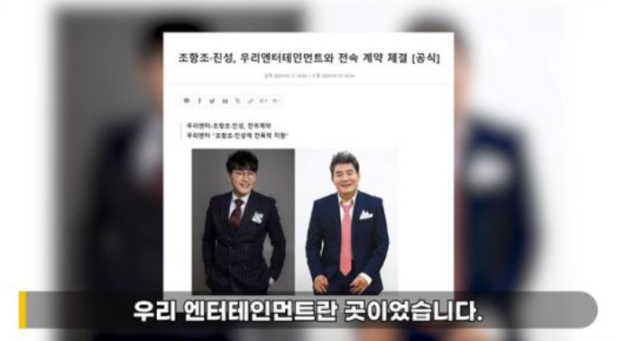 우리엔터테인먼트에는 조항조를 비롯해 진성과 ‘불타는 트롯맨’ 참가자인 무룡, 성용하 등이 소속돼 있다.