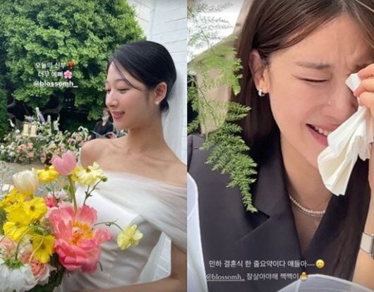 문현아도 “우리들 인생 행복하자 또 보고 싶어. 민하 결혼식 한 줄 요약이다 얘들아~ 잘 살아야 해 짹짹이”라며 눈물을 흘리는 사진을 덧붙여 눈길을 끌었다.